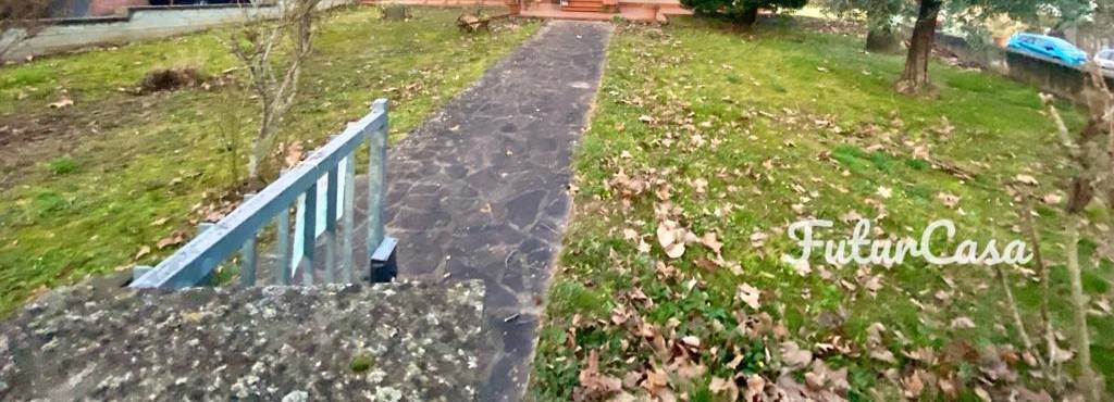 Nei pressi di Orentano. Casa singola disposta su unico piano rialzato. Vi si accede tramite ingresso carrabile e pedonale indipedente. Il giardino e la resede sono disposti su quattro lati, in principal modo sul retro e sul fronte. Il piano rialzato è di 180mq e così composto: si accede da una scala di pochi gradini che conduce ad una veranda e al portone d' ingresso, entrando troviamo davanti a noi l' ingresso, a destra una sala pranzo con cucinotto e terrazzo, a sinistra una ampia sala, proseguendo dal disimpegno troviamo due camere matrimoniali a sinistra ed un ripostiglio, e due camere matrimoniali a destra, in fondo vi sono due bagni, uno di servizio e l' altro di modeste dimensioni ed un ripostiglio finestrato. Uno degli aspetti favorevoli di questa abitazione è che ogni stanza dispone di finestre a TRE ante ciò rende la casa molto luminosa in qualsiasi orario della giornata. Al piano terra, al quale si accede sia mediante scala interna che dall' esterno, troviamo un grande laboratorio artigianale distribuito in più vani di circa 150 mq, per lo più molto luminoso in quanto dispone di numerose finestre ed anche un locale lavanderia-centrale termica. Il giardino sulla parte frontale è di circa 235 mq, quello sul retro di circa 550 mq su questo è presente un pozzo. Altra caratteristica di questa casa è la totale assenza di umidità e condensa nonostante sia rimasta inabitata per alcuni anni. Si respira un' atmosfera piacevole data dalla posizione rialzata e dalla luminosità.